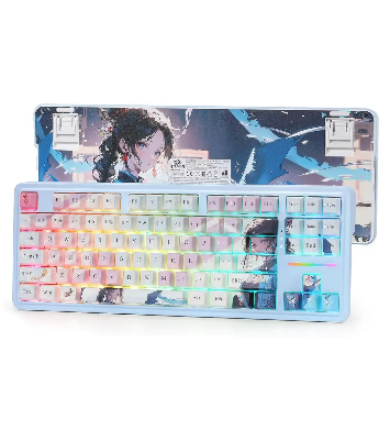 یکی از خاصترین جنبههای این کیبورد، ظاهر آن است. ترکیب رنگ آبی روشن با طرحهای خاص و الهامگرفته از انیمه، جلوهای منحصر به فرد و جذاب به K728 PRO AK میبخشد. این طراحی فراتر از یک ابزار گیمینگ، به یک قطعه هنری روی میز شما تبدیل میشود. این ترکیب رنگی، به ویژه برای کسانی که به دنبال یک ستاپ گیمینگ متفاوت و بیانگر شخصیت خود هستند، یک انتخاب عالی محسوب میشود. این زیبایی بصری، به همراه نورپردازی RGB پویا، یک تجربه کاربری کامل و لذتبخش را فراهم میآورد.