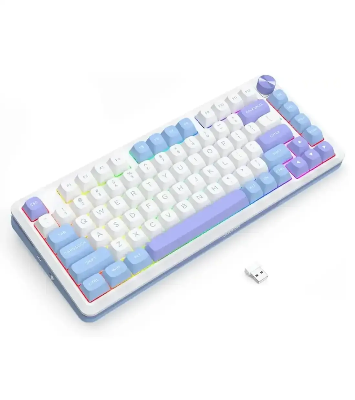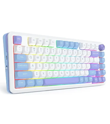 مدل K681 WBP با ترکیب رنگی جذاب سفید، آبی و بنفش (White, Blue, Purple)، از کیبوردهای مشکی و خاکستری خستهکننده فاصله گرفته و به یک عنصر دکوراتیو در ستآپ شما تبدیل میشود. این کیبورد از طراحی ارگونومیک بدون صفحه استراحت مچ (Palm Rest) برخوردار است که به کاربر اجازه میدهد تا صفحه استراحت مچ مورد علاقه خود را به صورت جداگانه انتخاب کند. فرم فشرده 75% و پایههای قابل تنظیم، به شما کمک میکنند تا زاویه کیبورد را مطابق با راحتی دست خود تنظیم کنید. همچنین، این کیبورد با سیستمعاملهای مختلف از جمله Windows، macOS و Linux سازگاری کامل دارد و اتصال بلوتوث آن میتواند به طور همزمان به چندین دستگاه متصل شود.