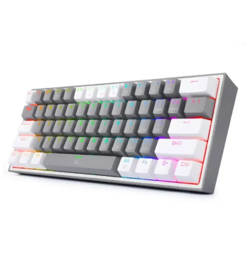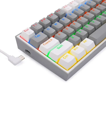 صفحهکلید Redragon K617 یک کیبورد زیبا و کاربردی و به صرفه است که با سیم و کابل تایپ C متصل می شود. 61 کلید فوقالعاده فشرده و جمع و جور و با حداقل اشغال فضا یک میز مرتب را به شما می بخشد. حداکثر 20 حالت از پیش تعیین شده نور پس زمینه توسط خود صفحه کلید قابل تنظیم می شود. روشنایی و سرعت نورها نیز توسط خود صفحه کلید قابل تنظیم است. فقط کافی است که حالت بازی خود را انتخاب کنید تا از هماهنگی نورها در هنگام بازی لذت ببرید.