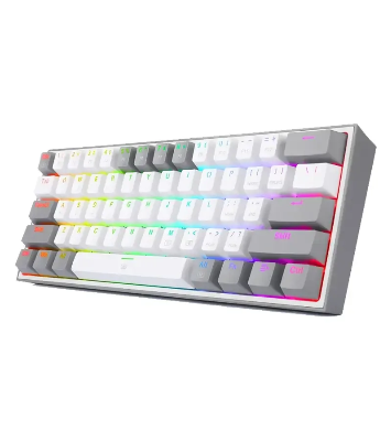 صفحهکلید Redragon K617 یک کیبورد زیبا و کاربردی و با صرفه است که یا سیم و کابل تایپ C متصل می شود. 61 کلید فوقالعاده فشرده و جمع و جور و با حداقل اشغال فضا یک میز مرتب را به شما می بخشد. حداکثر 20 حالت از پیش تعیین شده نور پس زمینه توسط خود صفحه کلید قابل تنظیم می شود. روشنایی و سرعت نورها نیز توسط خود صفحه کلید مانند نور قابل تنظیم است. فقط کافی است که حالت بازی خود را انتخاب کنید تا از هماهنگی نورها در هنگام بازی لذت ببرید.