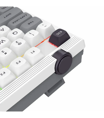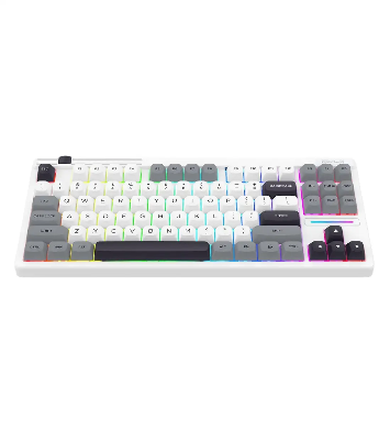 K729 PRO با 87 کلید، فرم فاکتور TKL (Tenkeyless) را دارد، یعنی کلیدهای نام-پد را حذف کرده است. این طراحی فضای بسیار بیشتری روی میز برای حرکت ماوس فراهم میکند که یک مزیت حیاتی در بازیهای FPS است. ترکیب رنگ بدنه سفید، طوسی و مشکی، یک ظاهر مدرن، مینیمال و حرفهای به کیبورد میبخشد. این پالت رنگی خنثی، به راحتی با هر ستاپ گیمینگ یا محیط کاری هماهنگ میشود. اگرچه این کیبورد صفحه استراحت مچ ندارد، اما طراحی ارگونومیک و TKL آن، راحتی نسبی در طولانیمدت را فراهم میکند.